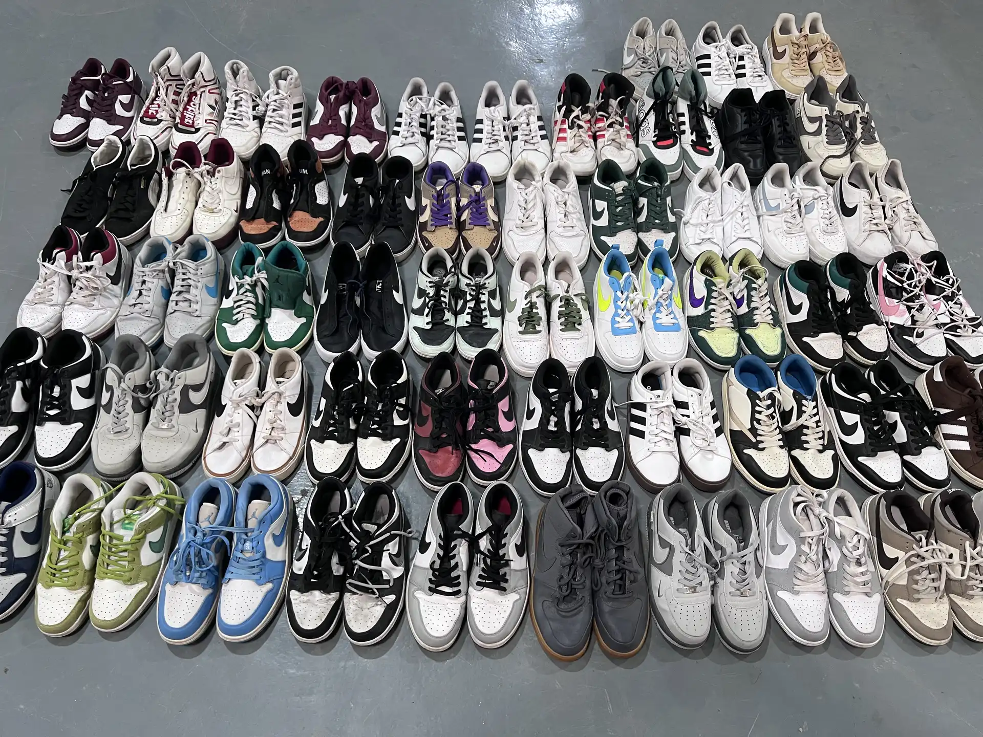 Wholesale second-hand branded shoes — Nike, Adidas, Jordan, and 30+ top brands. Strict cleaning and grading process. Exported to 100+ countries.